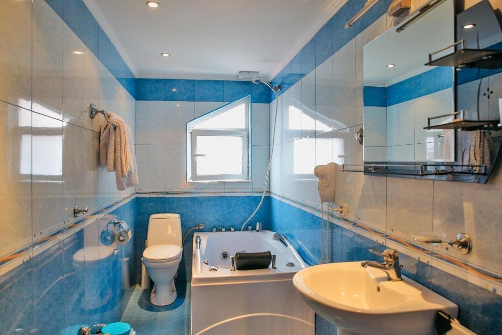 Each guest room at Gold Hotel is a haven of relaxation, equipped with air conditioning for those warm summer days, and a cozy seating area ideal for sinking into with a good book. Entertainment is readily available with a flat-screen TV offering a wide range of satellite channels. For valuables, a safety deposit box is provided, ensuring peace of mind throughout your stay. The private bathrooms are modern and well-appointed, complete with a bidet, complimentary toiletries, and a hairdryer, ensuring guests feel pampered and refreshed. Additionally, the convenience of a fridge in every room adds a touch of home, making it easy to keep snacks and beverages close at hand.