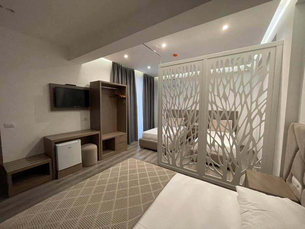 Each room at Hotel Mare 2 is a haven of comfort, featuring a private balcony that invites guests to bask in the tranquil ambiance of Ksamil. The rooms are equipped with air conditioning for those warm summer days and a flat-screen TV for entertainment, ensuring a stay that is both comfortable and enjoyable.